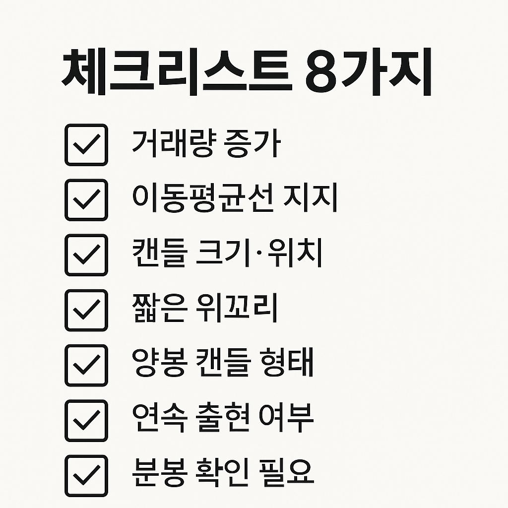 - 위치(추세/지지대), 거래량, 다음 날 확인 신호가 붙으면 신뢰도가 급상승한다.