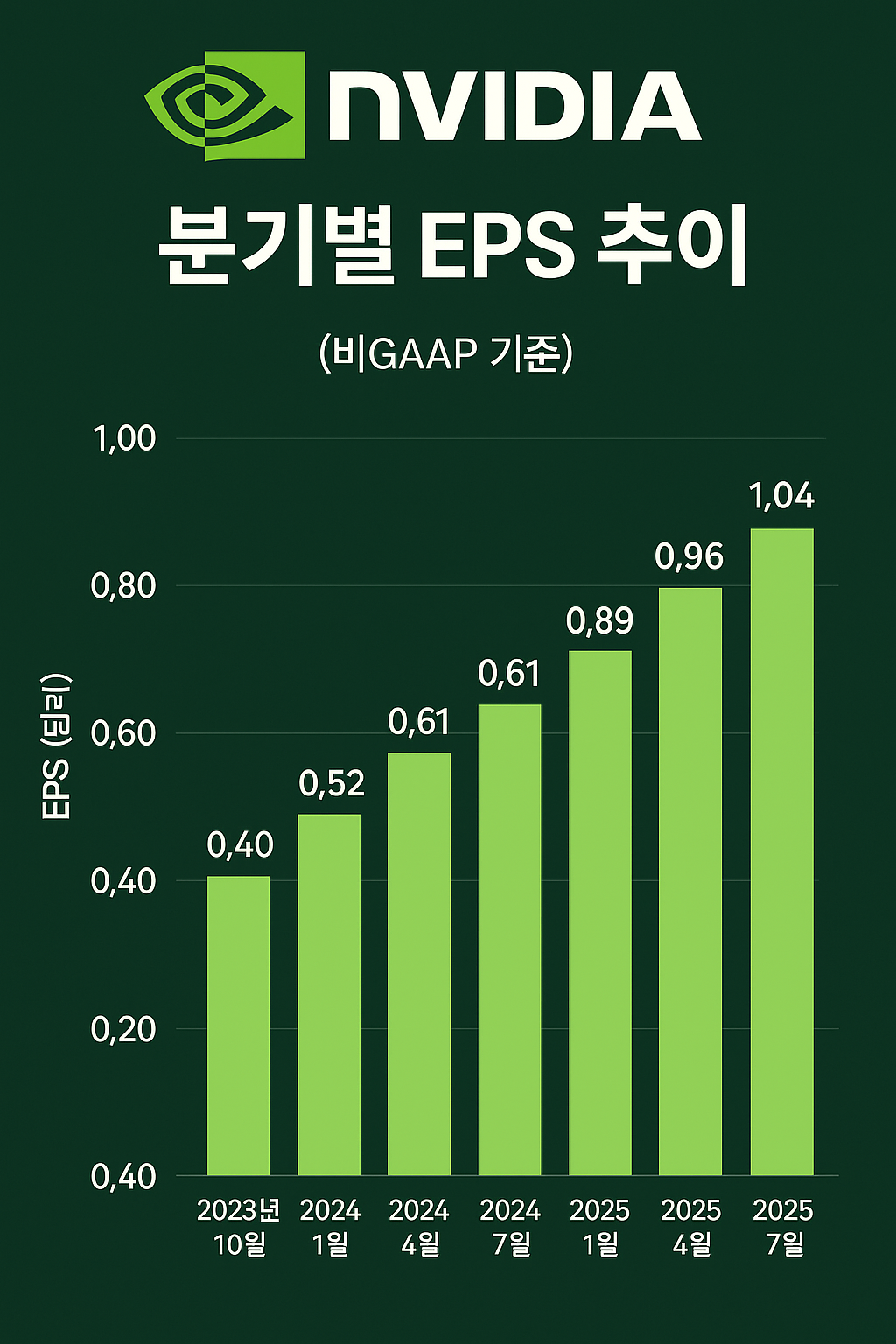 엔비디아의 EPS(비GAAP 기준)는 매출 성장과 함께 꾸준히 상승세를 보여주고 있다